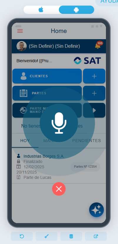 Además de la función "flexygo.nav.goAI" en la app de flexygo también existe la función "flexygo.ai.startVoiceRecognition" a la solo le hace falta indicarle el id del asistente y con ello mostrará un modal que empezará a escuchar lo que el usuario diga y al terminar de escuchar enviará dicho mensaje al asistente como el primero al que la IA responderá automáticamente.