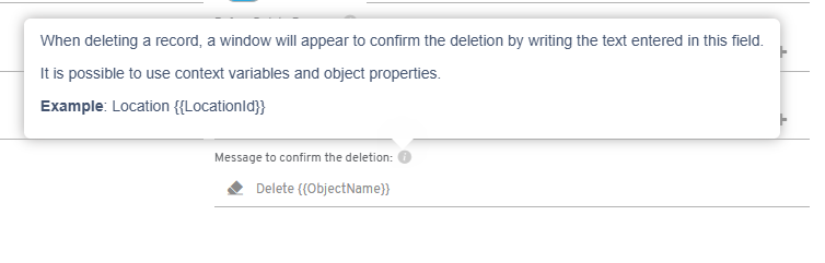 Desde la configuración del objeto es posible definir un texto de confirmación que el usuario debe escribir antes de eliminar un registro. Este texto puede personalizarse utilizando propiedades del propio objeto, lo que ayuda a reducir borrados accidentales y añade una capa extra de seguridad en el proceso.